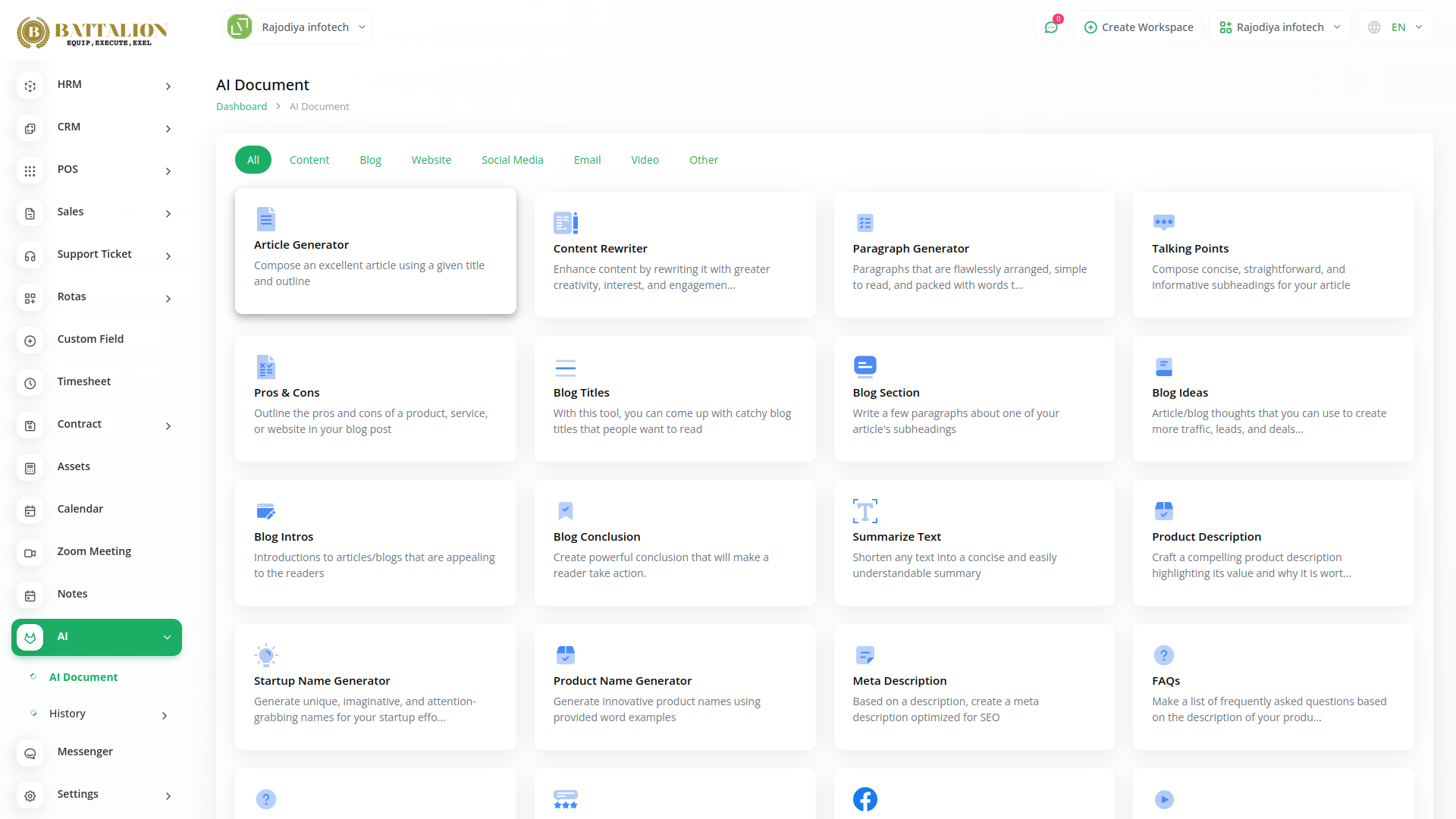 With AI Document ability to generate content at scale, businesses can produce a large volume of articles, blog posts, social media content, and more, increasing productivity and content output.