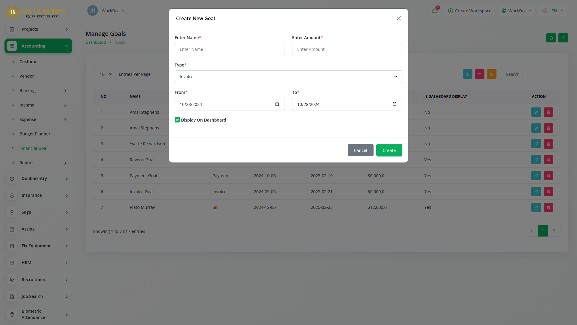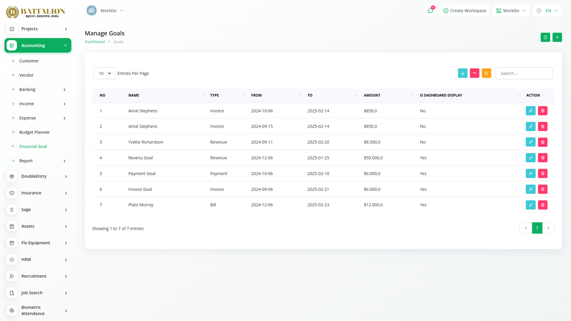 Set clear financial and business goals-and stay on track with real-time insights using Battalion’s Financial Goal Module (powered by the Account Module).