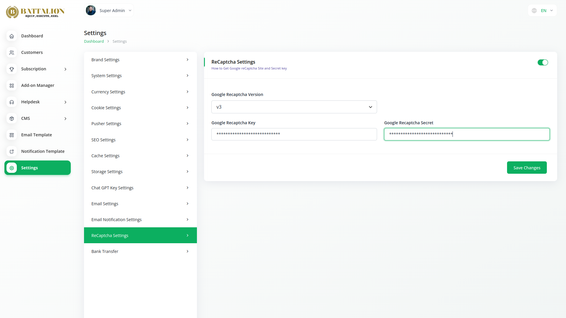 Google reCAPTCHA uses a key pair consisting of a site key and a secret key to protect your website or mobile app from spam and abuse.