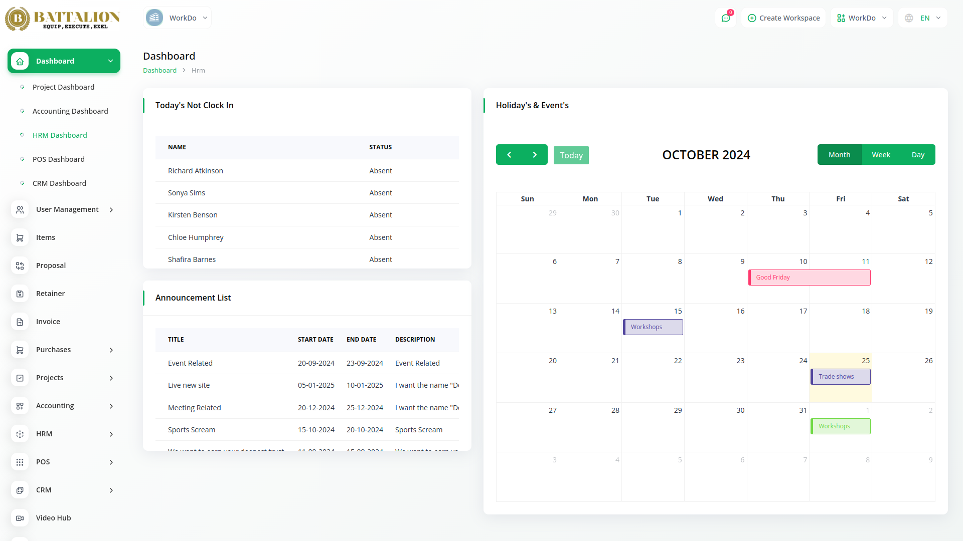 Battalion HRM simplifies managing employee matters, recruiting new talent, boosting productivity, and compensating your team – all in one place, with zero stress. Whether you're a consultant, a small business owner, or a large enterprise, this system is designed to meet your needs.
