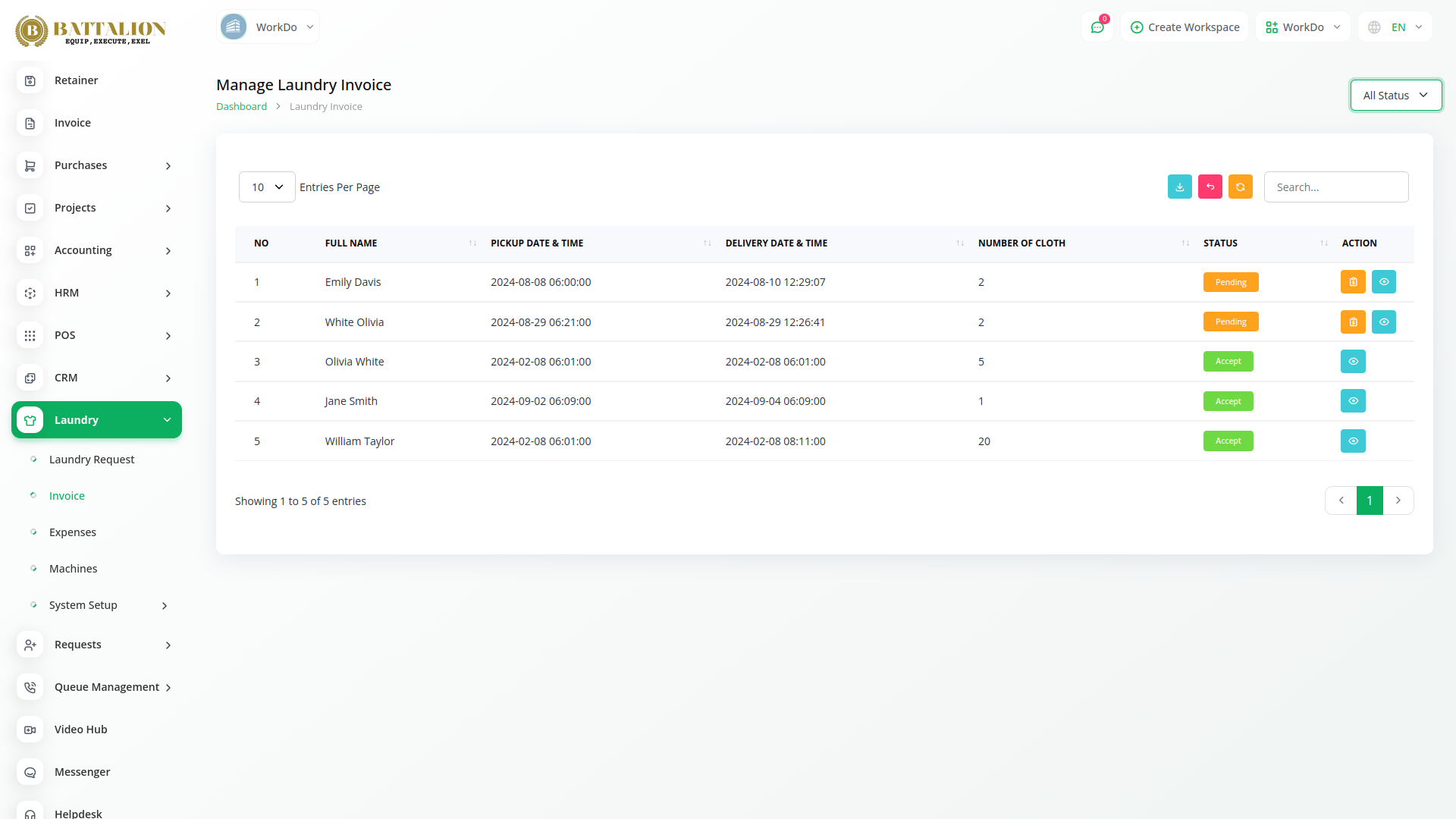 The Battalion Laundry Management Module is a key pillar in our organizational framework, built to deliver efficiency and exceptional service.