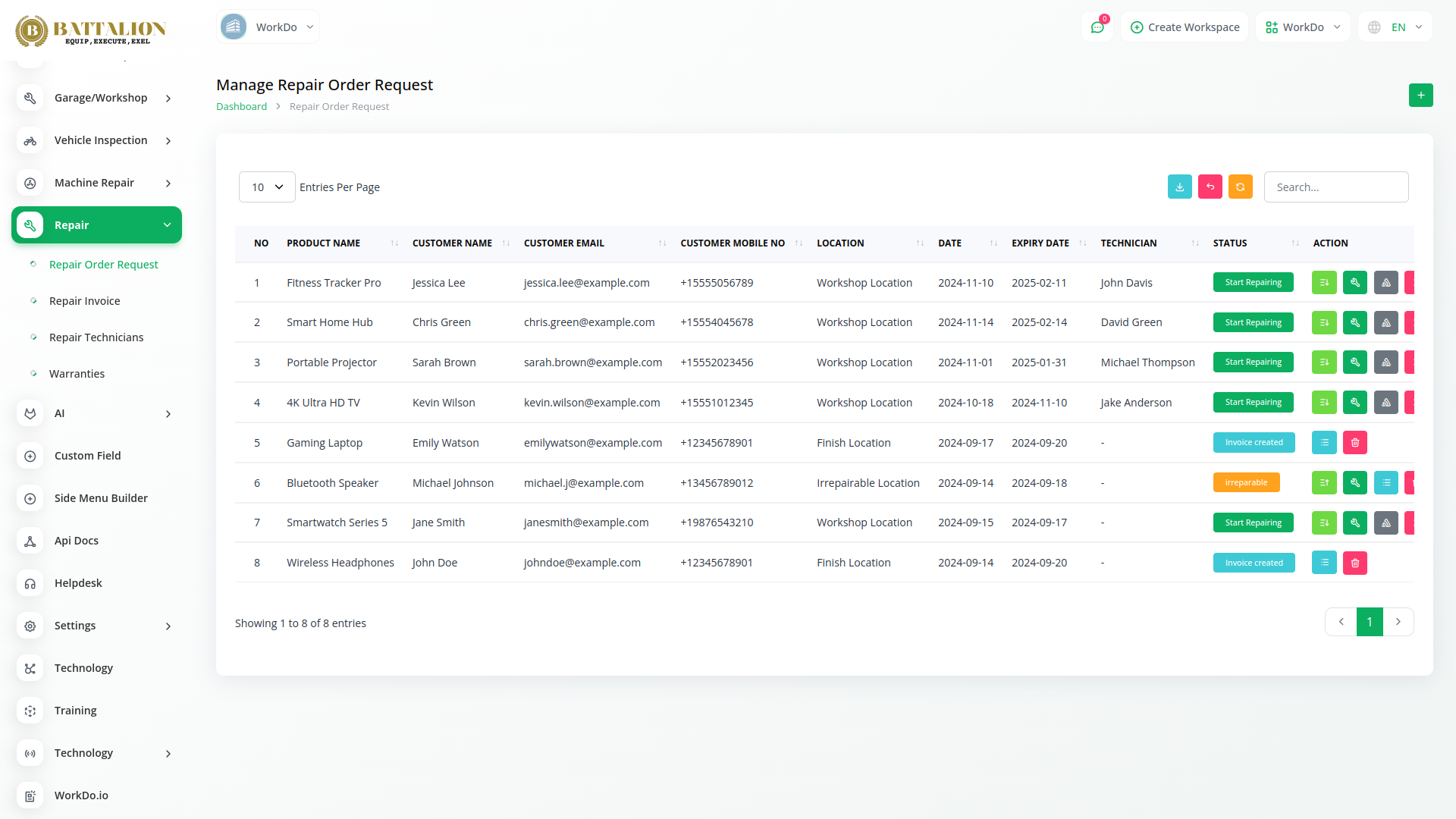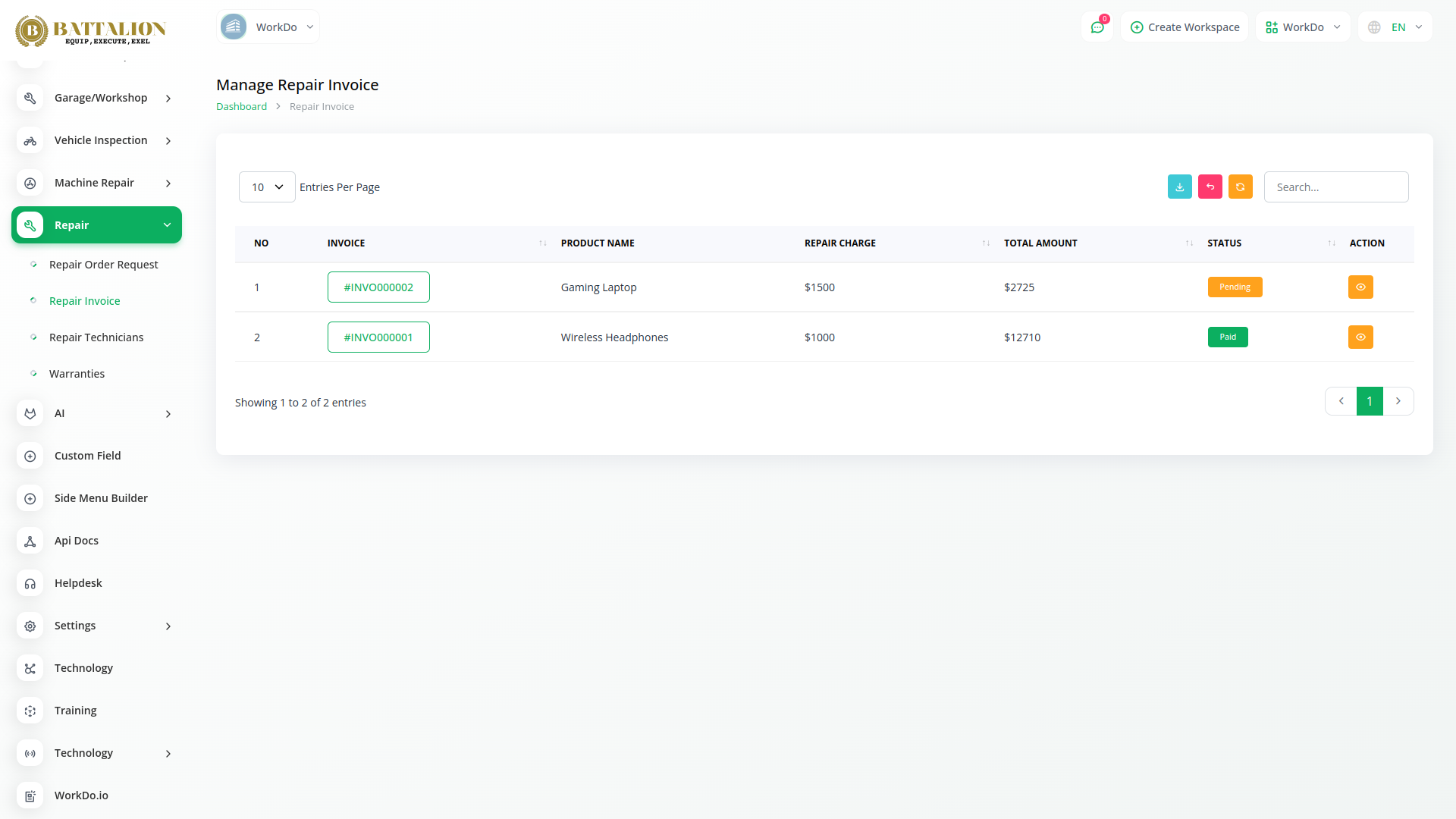 Effortlessly manage repair orders and invoices all in one place with Battalion’s Repair Management Module. Simplify your workflow and boost efficiency-so you can focus on delivering excellent service every time.