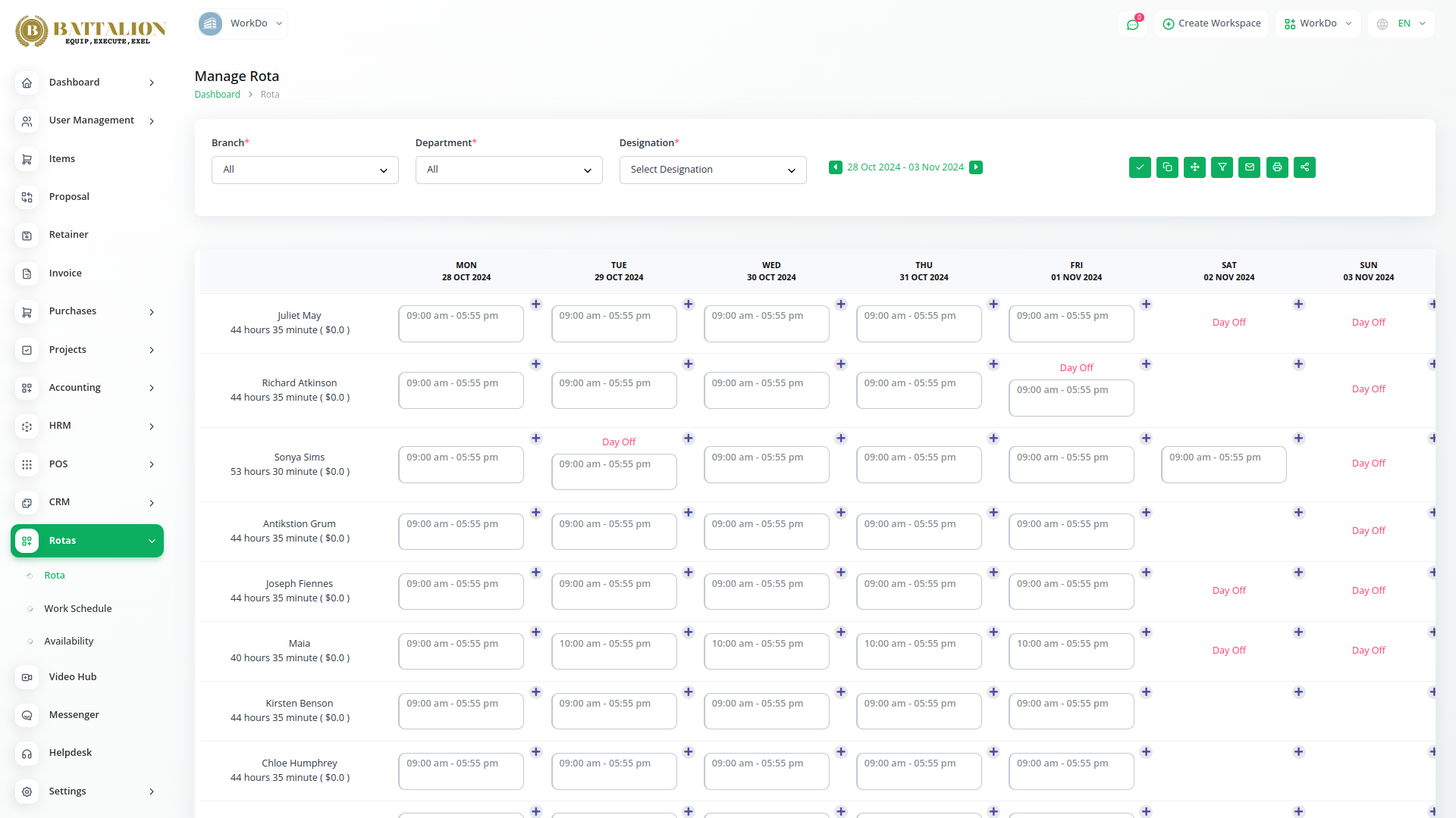 Take control of your workforce scheduling with Battalion’s Rota Management System- a simple yet powerful tool for managing employee shifts, availability, time off, pay rates, and more, all from one centralized platform.