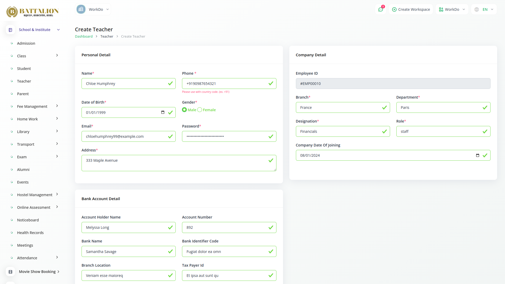 Battalion understands the unique needs of every stakeholder in the education ecosystem. That’s why the School Management Module offers three dedicated login types -Student Login, Teacher Login, and Parent Login. Each portal delivers a personalized experience, providing users with access to the tools, information, and features relevant to their role. This role-based structure ensures clarity, enhances communication, and fosters active engagement across the entire school community.