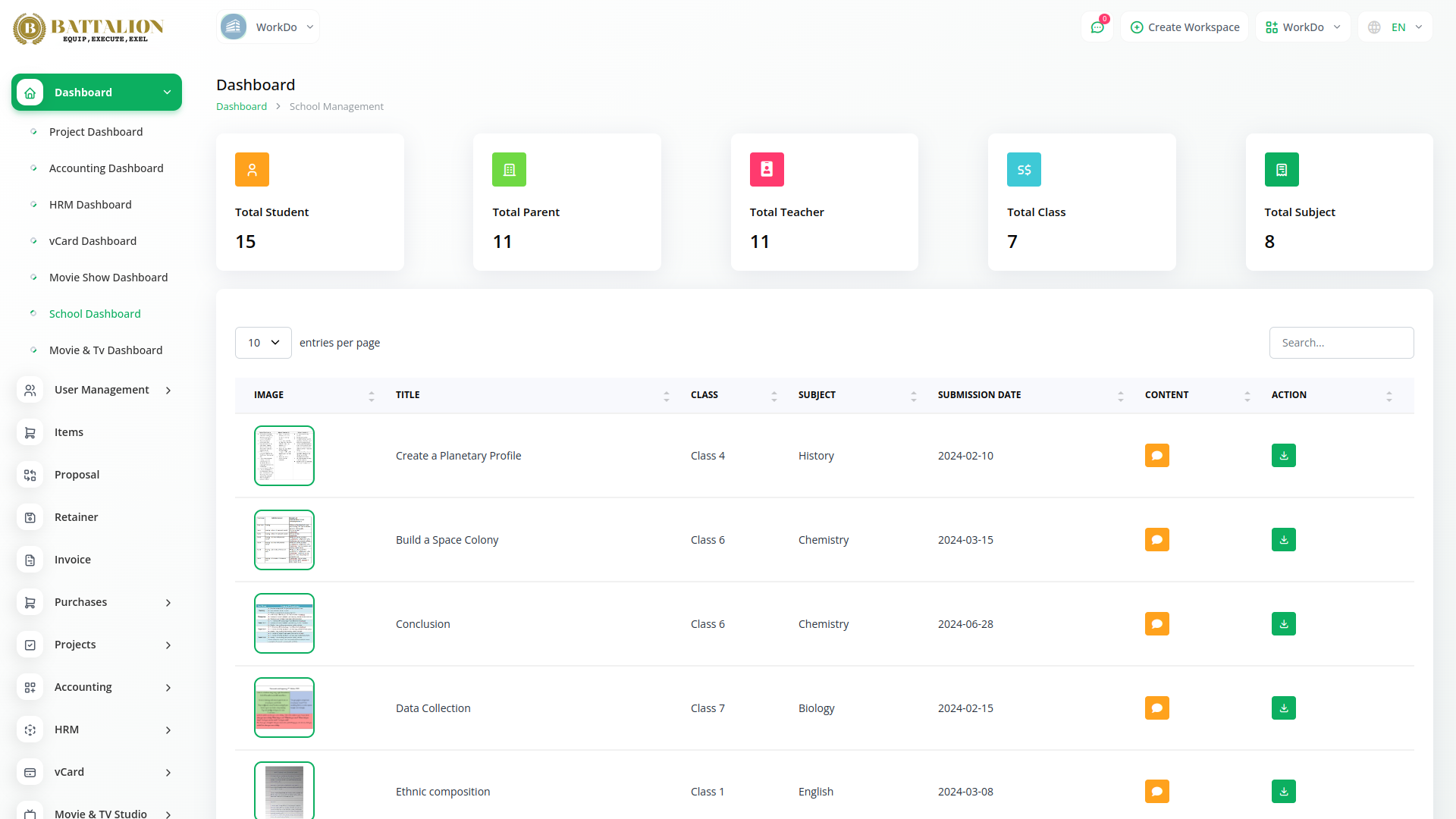 Empower your educational institution with Battalion’s School Management Module. Effortlessly handle admissions, customize user access, organize classes, and manage users - all within one unified, intuitive platform designed to maximize efficiency.