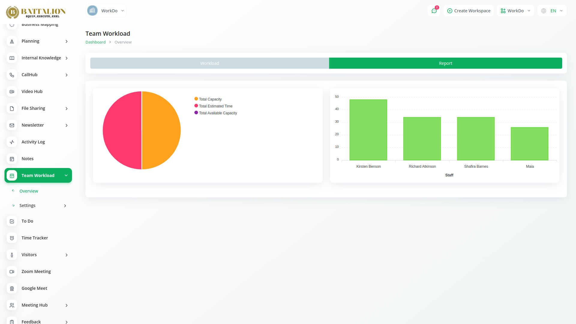 Battalion’s Team Workload Report gives you clear, actionable insights into team performance and capacity management.