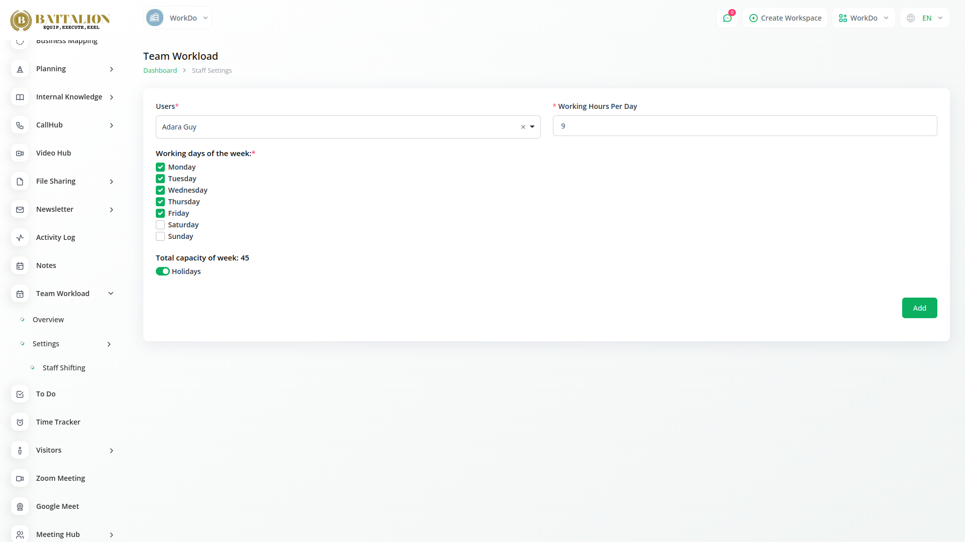 Battalion’s Team Workload Module helps you distribute tasks effectively across your team while monitoring each member’s utilization in real time.