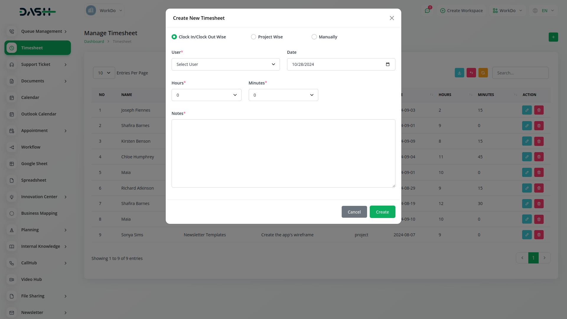 Easily create detailed timesheets by assigning projects, tasks, and users, along with defined start and end dates and time allocations. This structured approach allows you to manage project timelines with precision and ensure accountability at every stage.