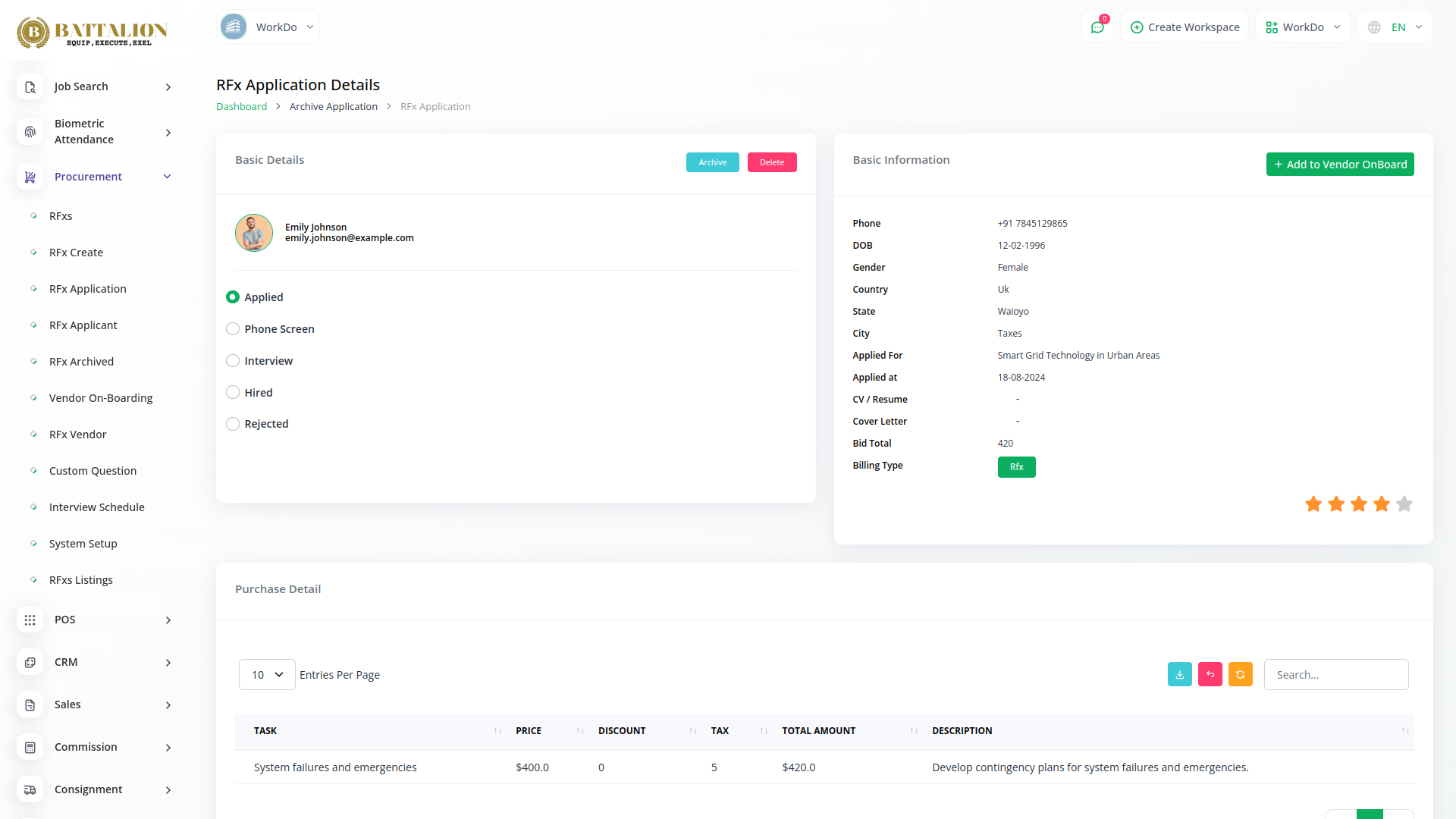 Maintain strong relationships with your vendors through seamless communication within Battalion.Share purchase orders electronically, receive updates on order status, and manage all communication with vendors in a centralized location. This fosters transparency and collaboration throughout the procurement lifecycle.